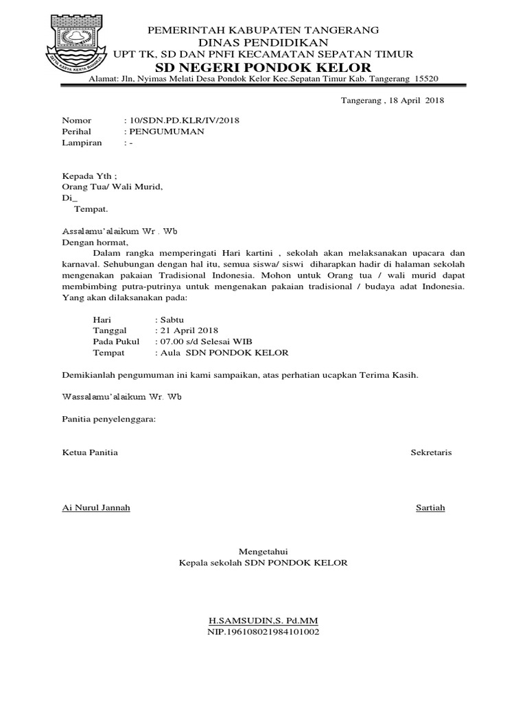 Contoh Pidato Hari Kartini Indonesia sudah terkenal dengan perayaan hari Kartini dan setiap tahunnya Bangsa Indonesia selalu mengenang jasa R. Buatlah Satu Buah Surat Resmi Dengan Tema Memperingati Hari Pahlawan. Surat Undangan Wali Murid Format 638 x 1051 Download Surat Undangan Wali Murid Rapotan SMK Al Format 837 x 793 pixel Download Contoh Surat Resmi Undangan Wali Murid Format Doc Word Format 1130 x 1600 pixel Download Download Contoh Surat Undangan.