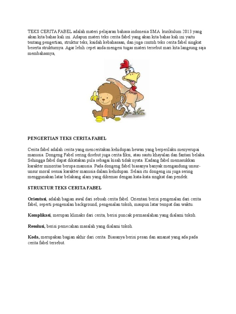 Teks Cerita Fabel Adalah Materi Pelajaran Bahasa Indonesia Sma