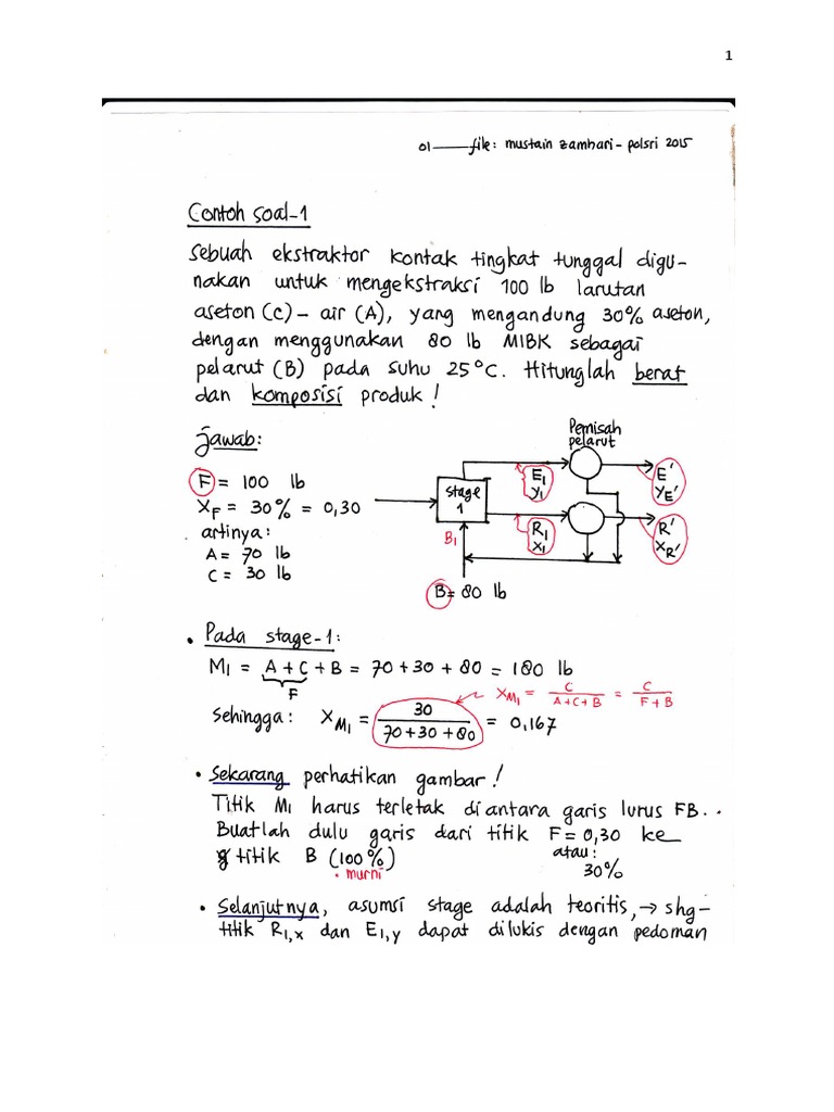 Contoh soal ekstraksi. Dalam artikel ini terdapat 8 contoh soal matematika SMP tentang memahami dan menyelesaikan permasalahan terkait dengan perbandingan berbalik. Berikut contoh dari ekstraksi yang melibatkan benda padat dan cair pada prosesnya. Sebuah bejana digunakan untuk ekstraksi cair-cair LLE dalam pemisahan sebuah bahan terlarut atau solute S dari air W.